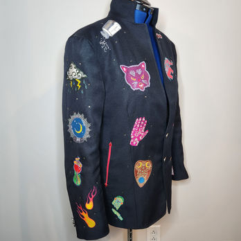 Custom designed band logo printed on cotton for bandanas and canvas for patches